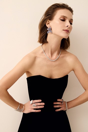 На Светлане: платье Yvon (ЦУМ); Серьги Pasquale Bruni, коллекция Giardini Segreti; колье Mercury, коллекция Classic, кольцо Mercury, коллекция Classic, кольцо Chopard, коллекция Precious Lace, кольцо Pasquale Bruni, коллекция Giardini Segreti, браслет Mercury, коллекция Classic, браслет Casato, коллекция Maureen