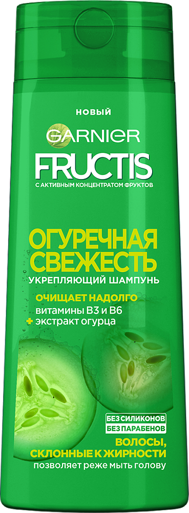 Укрепляющий шампунь Огуречная свежесть, Fructis, Garnier Укрепляющий шампунь Огуречная свежесть, Fructis, Garnier