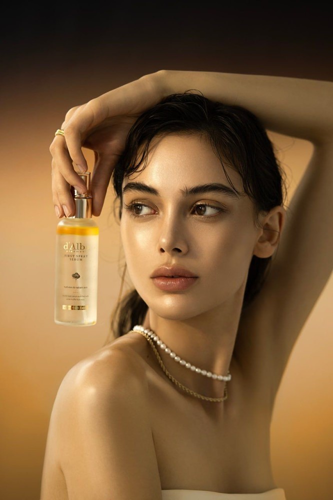 Это средство должно обязательно присутствовать в комплексном уходе, если вы хотите устранить зимнюю бледность. В ее составе предполагаются витамины, антиоксиданты и растительные экстракты. Кстати, одно средство может заменить и тонер, и сыворотку. Это мультифункциональный спрей-сыворотка White Truffle First Spray Serum, d’Alba.