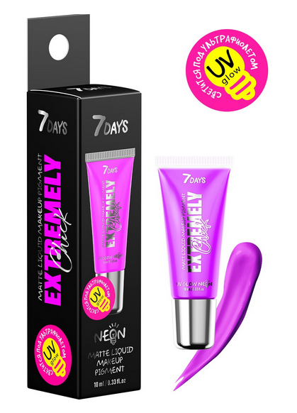 Для любителей креативного макияжа бренд 7DAYS разработал жидкие пигменты с матовым финишем. Теперь можно делать самые длинные и яркие стрелки, не боясь потеряться на самом шумном рейве, ведь пигменты светятся в темноте. Выбирайте цвет по своему вкусу: фиолетовый, оранжевый, желтый, розовый и зеленый.