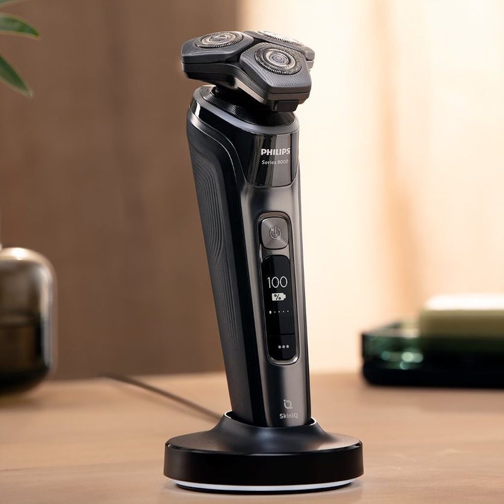 Электробритвы Philips SkinIQ серии 9000 адаптируются под особенности лица мужчины. Технология SkinIQ персонализирует бритье для максимально эффективного и комфортного результата благодаря трем встроенным датчикам. Датчик мощности адаптируется к особенностям типа волос, измеряя параметры щетины 500 раз в секунду, поэтому бритва бреет одинаково качественно любой тип волос. Датчик движения следит за вашей техникой и учит совершать правильные круговые движения, что позволяет бриться быстрее и эффективнее стресса для кожи. Датчик силы давления подсказывает, если в процессе вы слишком слабо или слишком сильно давите на свое лицо – если оказывать правильное давление, то вы забудете о раздражении после бритья. Рекомендации по бритью также можно смотреть в приложении Philips GroomTribe. В комплекте идет мощная система очистки, которая эффективно очищает и смазывает бритву всего за 1 минуту, поддерживая ее в оптимальном состоянии. Просто включите бритву и совершайте круговые движения – все остальное она сделает за вас!