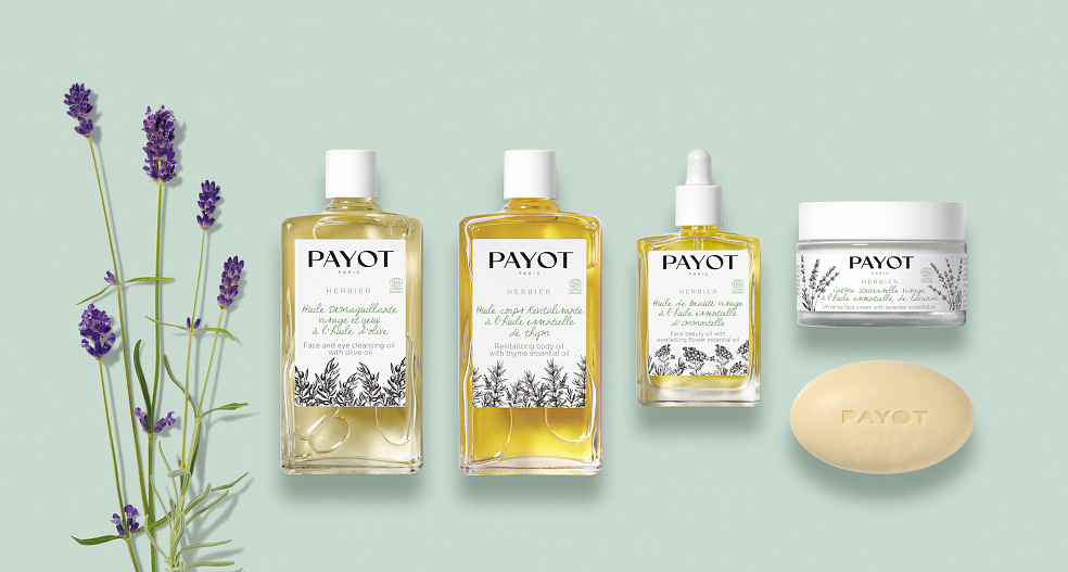 Осознание экологического и энергетического кризисов стимулирует покупателей менять привычки потребления. Чтобы поддержать тенденцию к более осознанной и экологичной жизни, PAYOT создает свою первую органическую линию HERBIER, содержащую все для полноценного ухода за кожей лица и тела. Новая программа ухода за кожей состоит из 5 средств, имеет органическую сертификацию, содержит 100% ингредиентов натурального происхождения. Минималистичная веганская формула  состоит из минимально необходимого количества компонентов. Это органические, выращенные во Франции чистые растительные экстракты и эфирные масла: лаванда – тимьян – бессмертник – розмарин – олива. Благодаря своим антиоксидантным, противовоспалительным и антимикробным свойствам, эти эфирные масла помогают укрепить иммунную систему кожи, устранить токсины и другие продукты обмена.