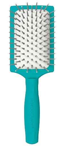 Чтобы поклонники бренда Moroccanoil никогда не расставались с любимой щеткой для волос, компания создала ее мини-аналог. Щетка имеет зубчики, которые содержат ионы, отталкивающие влагу, а также керамические вкрапления, которые сохраняют тепло эффективнее любых других материалов. Это помогает сократить время сушки волос. Ионы также выступают в роли кондиционера для стержня волоса, придавая здоровый, сияющий вид и объем.