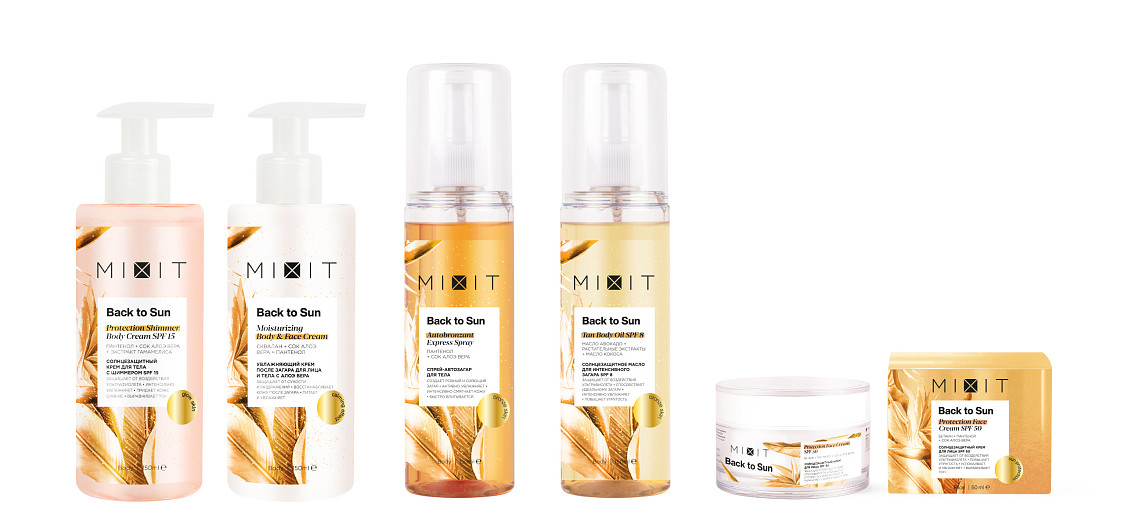 Средства обеспечивают надежную защиту от УФ-излучения, ровный и стойкий загар, а также делают кожу нежной и бархатистой. Солнцезащитный крем для тела с шиммером SPF15 интенсивно увлажняет и повышает упругость кожи. Масло для интенсивного загара SPF8 ускоряет процесс загара, делает его глубоким и равномерным. Солнцезащитный крем для тела SPF50 предотвращает фотостарение и появление пигментных пятен и пр.