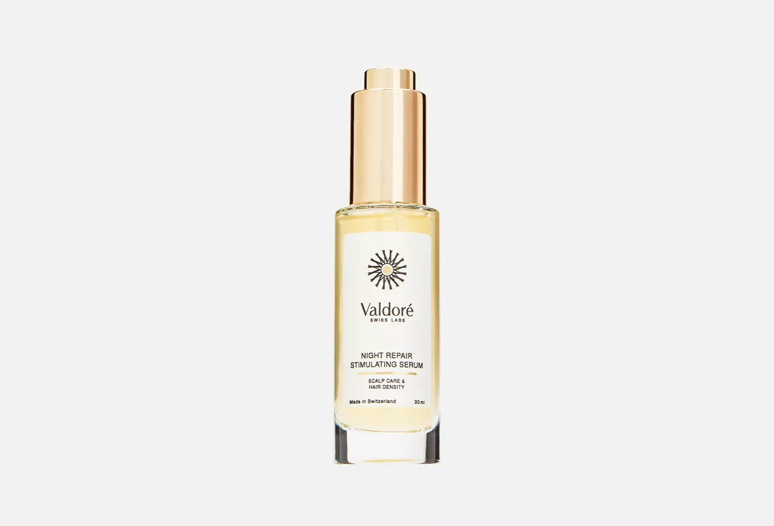 Стимулирующая сыворотка Valdoré Night Repair способна омолодить волосяные фолликулы, ускоряя рост волос и замедляя процессы старения, укрепить корни волос, устранить перхоть и раздражения. Это несмываемое средство предлагается для ночного применения. Ключевым ингредиентом средства является Valdoré Signature Complex — уникальная комбинация экстрактов стволовых клеток, полученных из сильных и устойчивых к непогоде альпийских растений (альпийской розы, швейцарской яблони, эдельвейса).