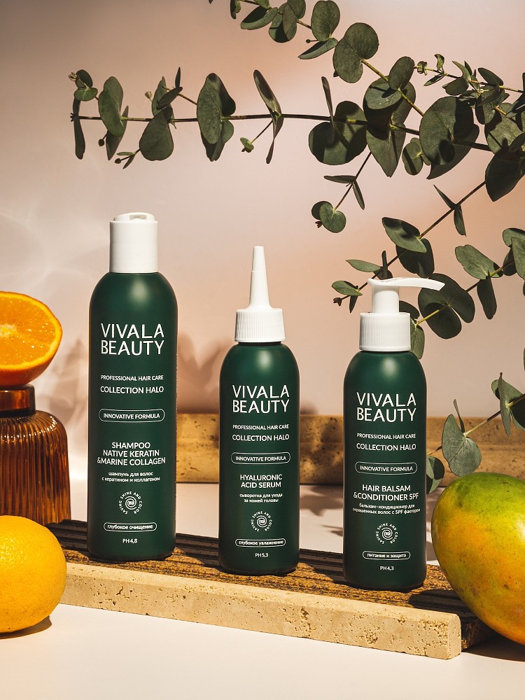 В формулу шампуня для окрашенных волос VivaLaBeauty включены компоненты, обеспечивающие наилучшую защиту цвета. Кератин в двух формах восстанавливает и уплотняет волосы, нативный морской коллаген разглаживает их, а янтарная кислота и комплекс растительных экстрактов удерживают влагу по всей длине. Бальзам-кондиционер с SPF фактором VivaLaBeauty имеет в составе 22 активных компонента, которые предотвращают спутывание и выпадение волос.