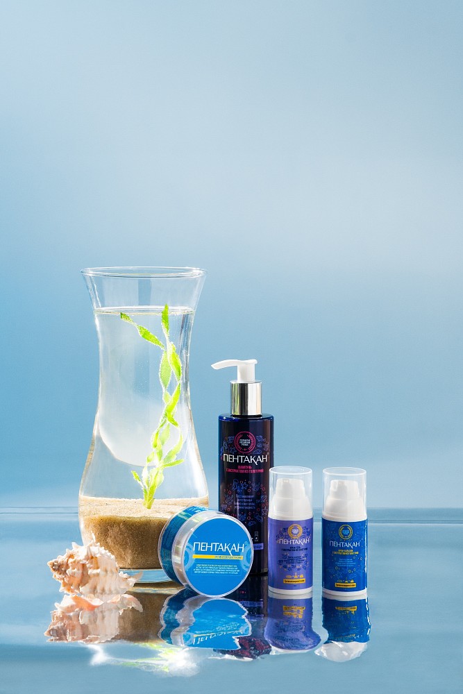 Главный компонент косметики, экстракт голотурий или «морских огурцов», обладает регенерирующей способностью и насыщает кожу биологически активными веществами из глубин океана. Шампунь «Пентакан» бережно очищает и восстанавливает естественный баланс кожи головы. Инновационный крем для лица «Пентакан» замедляет процессы старения, увлажняет кожу, а также помогает при угревой сыпи и прочих несовершенств кожи.