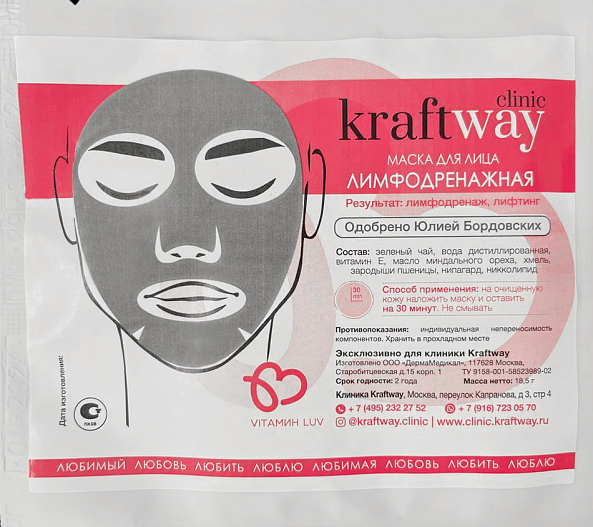 Этой весной клиника Kraftway выпустила тканевую лимфодренажную маску для лица Stimulating Face Mask в коллаборации с телеведущей и коучем по здоровью Юлией Бордовских. Новинка содержит экстракты зеленого чая, хмеля и зародышей пшеницы, масло миндального ореха и витамин Е. Все вместе они трудятся над тем, чтобы уже через 30 минут обеспечить лифтинг-эффект и прогнать отеки. А при регулярном применении маска предотвратит образование морщин и задержку жидкости.