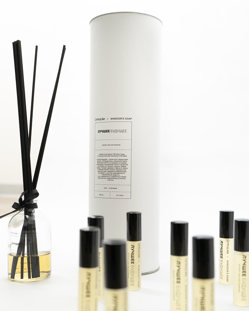 Главный новогодний подарок пациентам - совместный проект с парфюмером Яной Виндзор и ее брендом Windsor's Soap. Аромат входит в лечебные кейсы элайнеров Ortholike от 10 капп. Верхние ноты – это энергия радости на воплощение мечты и целей: гранат, сицилийский лимон, бергамот и розовый перец. Ноты сердца – это ваше твердое намерение и возможности достигать лучшего: пачули,  ветивер, листья мирры и тикового дерева. Базовые ноты – это любовь и доверие, чувство безопасности, в которых мы все нуждаемся: ваниль, сандал, амбра, черный перец и бобы тонка.