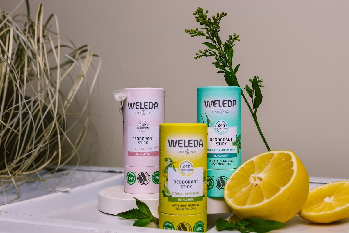 В дополнение к натуральным дезодорантам Weleda в формате спрея и roll-on, бренд выпустил новые – стики в экологичной картонной упаковке. Натуральные эфирные масла и цинковая соль обеспечат надежную защиту от неприятного запаха до 24 часов, а растительный крахмал в составе сдерживает избыточную влагу, но не блокирует потовые железы. В новую серию вошли 3 аромата: желтый – с цитрусом и бергамотом, зеленый – с мятой и эвкалиптом и розовый – для чувствительной кожи с маслом ши и шалфеем.