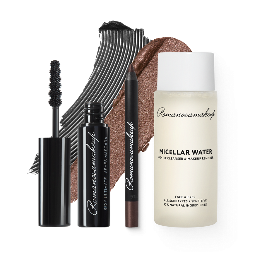 В ней собраны все косметические средства тревел-формата: универсальная тушь, водостойкий карандаш для глаз, контур-карандаш для губ, кремовый хайлайтер , мицеллярная вода, точилка. Их можно смело брать в ручную кладь.