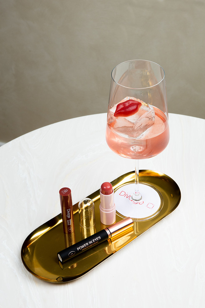 Особое предложение для гостей: при заказе коктейля Amur каждый получит в подарок набор косметики от Divage, включающий тушь, стик румяна и помаду — идеальный комплимент для создания образа к празднику.
