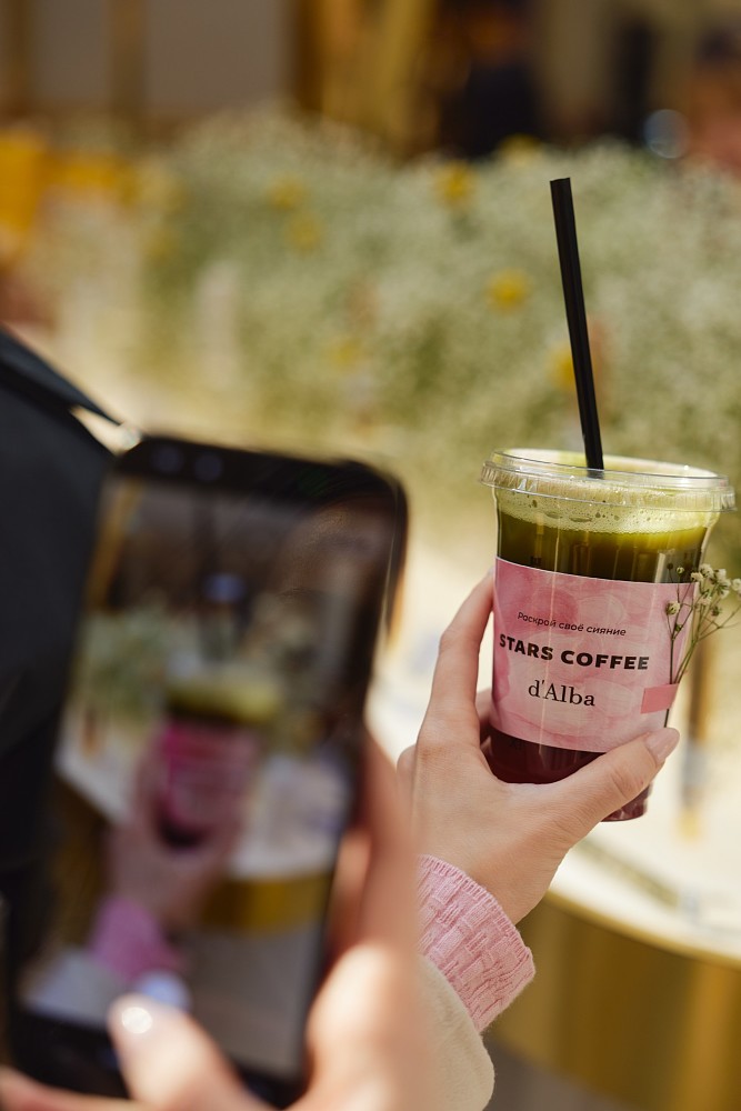 Всех гостей также ждут сюрпризы в рамках коллаборации со STARS COFFEE. На этот раз гостям предлагается новый освежающий лимитированный напиток Цитрусовый Маття-Бамбл с Малиной – его покупка сопровождается дополнительными бонусами и подарками от обоих брендов. Купив Маття-Бамбл, вы получите в подарок набор миниатюр от d’Alba и купон на дополнительную скидку в 10% на продукты бренда в поп-ап магазине.