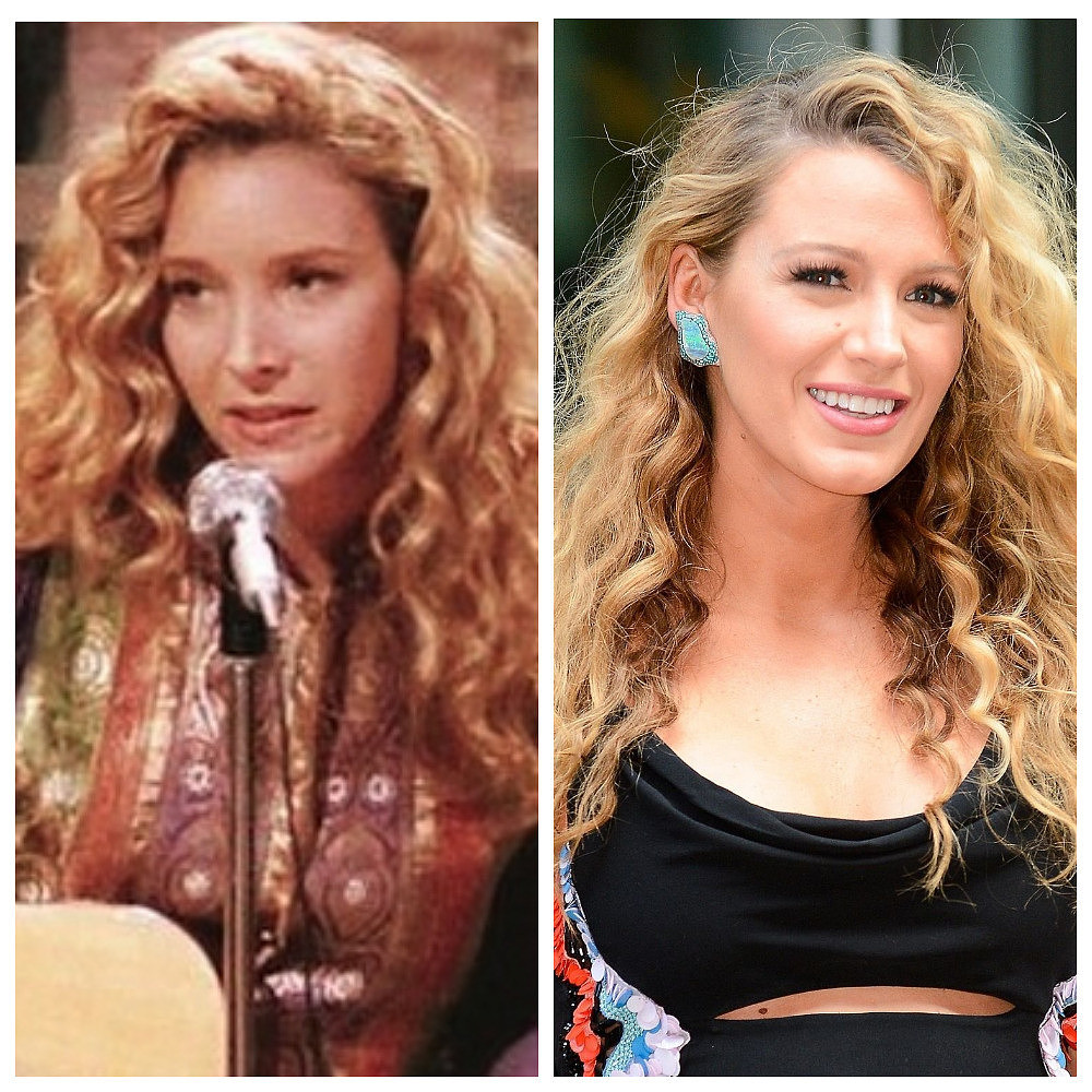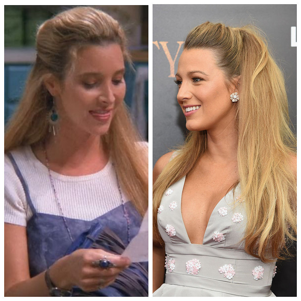 Блейк Лайвли активно заимствует у Фиби Буффе ее идеи причесок. Учитывая, что у обеих длинные русые волосы, звезда «Сплетницы» стала почти сестрой-близняшкой героини Лизы Кудроу. Например, коса на боку, кудри с ассиметричным пробором или заколотые назад прямые волосы. Конечно, стилисты Блейк немного модернизировали образы, добавив немного современности, но дух Фиби в ее образе определенно присутствует!