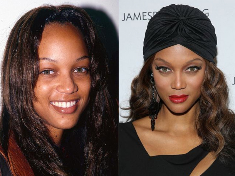 Популярная модель и телеведущая не скрывает факт хирургического вмешательства и считает, что именно ринопластика дала импульс ее карьере и позволила достичь высот в Голливуде. Еще в 18 лет Тайре выровняли перегородку после детской травмы и параллельно «европеизировали» нос, уменьшив спинку, крылья и кончик.