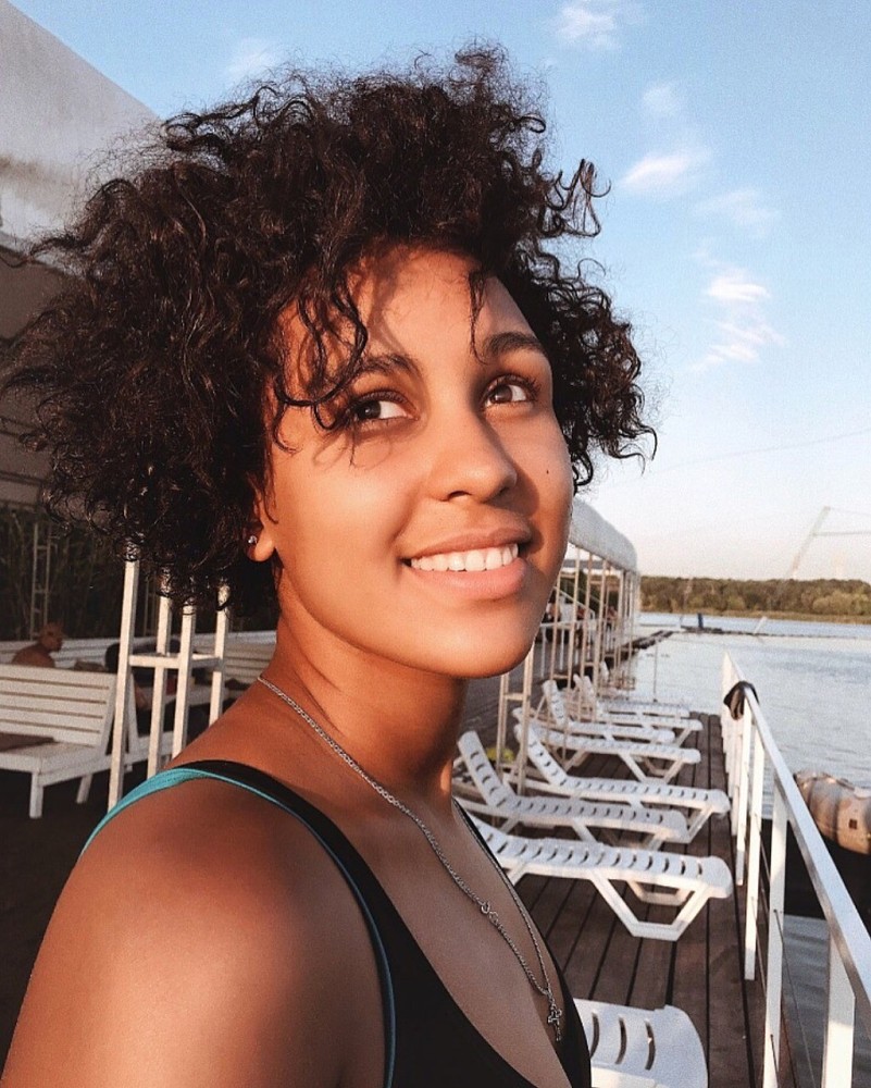 У меня волосы не сильно отрастают. В среднем 1 см в месяц, но это практически незаметно из-за того, что они сильно закручиваются. Самые длинные волосы у меня были в 10–16 лет — до попы, но их структура была другая. Афро-кудряшки появились только в 12–13 лет. Не знаю, в связи с чем они так резко изменились. Может быть, из-за того, что стала заниматься водными видами спорта.