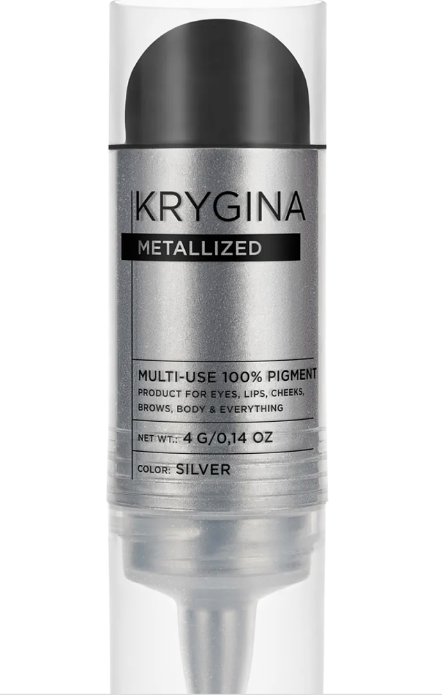 Рассыпчатый пигмент Metallized в оттенке Champagne с натуральным бежевым подтоном нанесите на подвижное веко, ключицы и плечи, чтобы достичь визуального сияния изнутри. Для создания эффекта бархатной кожи зафиксируйте пудрой.
