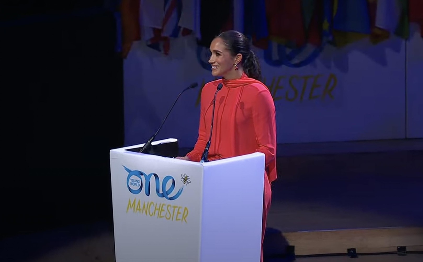 5 сентября Меган Маркл посетила церемонию открытия саммита One Young World в Манчестере вместе с принцем Гарри. Образ герцогини отличался лаконичностью: на Меган был красный брючный костюм от экологичного бренда Another Tomorrow, а волосы собраны в двойной текстурированный хвост с центральным пробором. Прическа смотрелась гладкой у лица — длинные волнистые пряди аккуратно уложили сзади.