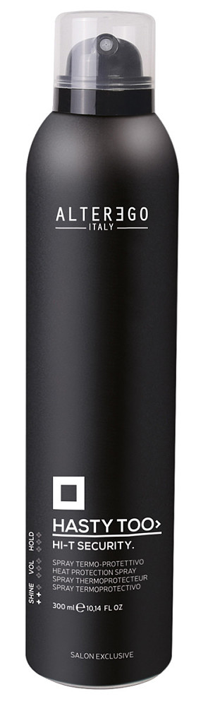 2. Кончики волос обработали термозащитным спреем HI-T SECURITY HASTY TOO, AlterEgo Italy и разгладили волосы стайлером для выпрямления волос.