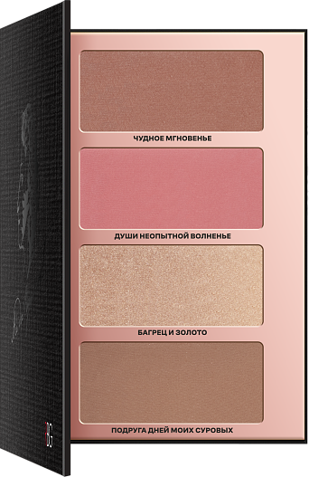 Макияж был выполнен в лучших традициях красной дорожки, а именно с акцентом на губы. Но для того, чтобы образ смотрелся безупречным, для начала необходимо выровнять тон лица. С помощью базы выровняли структуру кожи, далее нанесли тональный крем. Затем выполнили легкую коррекцию лица, используя пушистую кисть и универсальную палетку Ай да Пушкин!, а также добавили немного румян из той же палетки. Макияж глаз оставили легким: с помощью скульптора проработали складку верхнего века, нанесли немного румян для гармоничности образа.