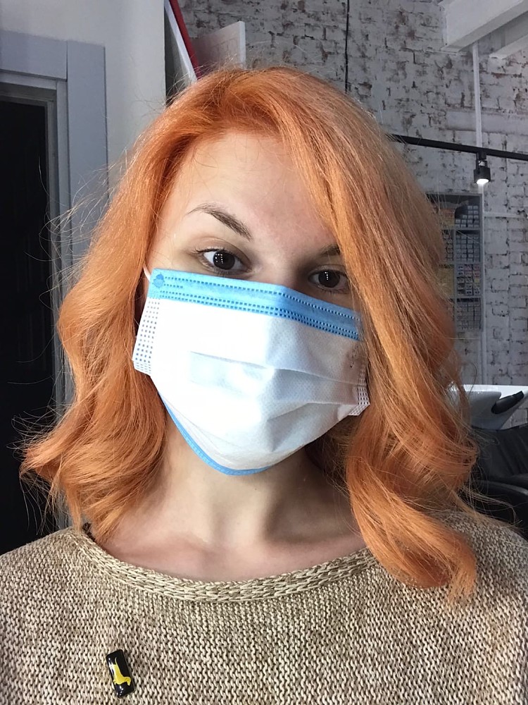 Второй этап представлял собой тонирование из двух красителей розового пигмента на всю длину волос и синего – на корни. Выдержав еще 20 минут, краситель смыли и снова провели восстанавливающую процедуру. Результат превзошел мои ожидания. Волосы приобрели «лососевый» оттенок, если можно так его назвать. Но под разным освещением он становится даже немного светло-рыжим или персиковым.