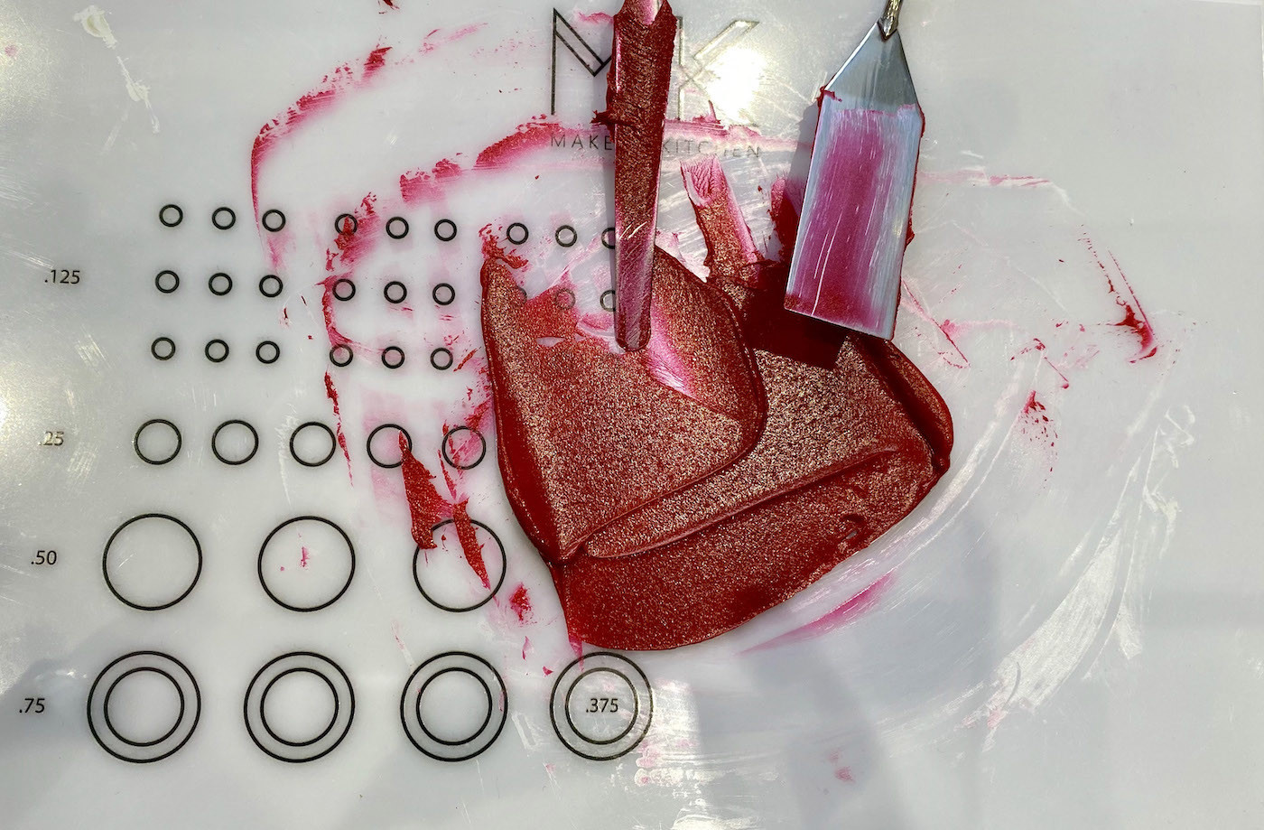 Во время процесса Дарья объясняет: «Есть насыщенный красный Red Red, а есть тонеры – они не меняют цвет, но немного корректируют оттенок. Если надо охладить – то добавляем фиолетовый, а не белый. Можно сделать с голубым подтоном, с желтым, с розовым, с нейтральным. Каждая база может включать определенное количество пигмента и, если его переложить – получится слишком сухая текстура. В помаде может быть всего 27 маленьких капель пигмента. У нас есть специальная доска и своя система расчетов». Я слушаю, пытаюсь вникнуть, но пока это звучит для меня, как лекция в школе Хогвардс.