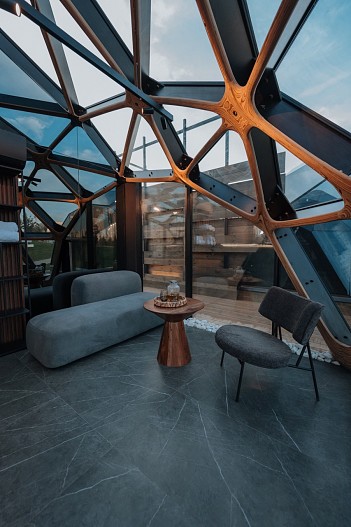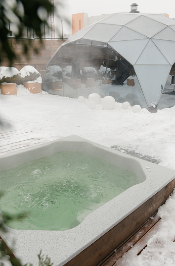 Банный кокон, личная уличная терраса, купель и джакузи — всё это принадлежало в ближайшие два часа только мне одной. Каждый модуль расположен так, что внутренний дворик с купелью полностью закрыт от города и людей.