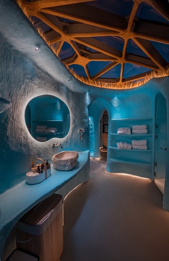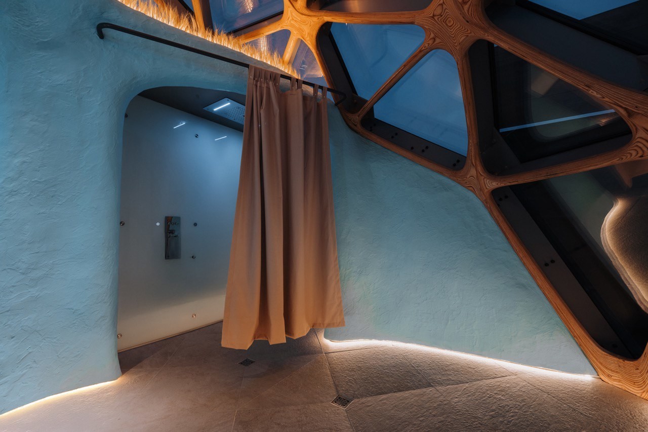 В бане есть разные программы парений, которые можно менять с помощью голосового управления: «Тропик», «Океан» и «Лес». Каждая включает световые эффекты, музыкальное сопровождение и ароматы, погружая в нужное настроение. Я прошла их все и ни разу не появилось желания сбежать — температура очень комфортная. В душе тоже можно поиграть с программами: «мягкий тропический дождь», «мелкая дисперсия воды» или «бодрящий водопад» точно приведут в чувство после парной.