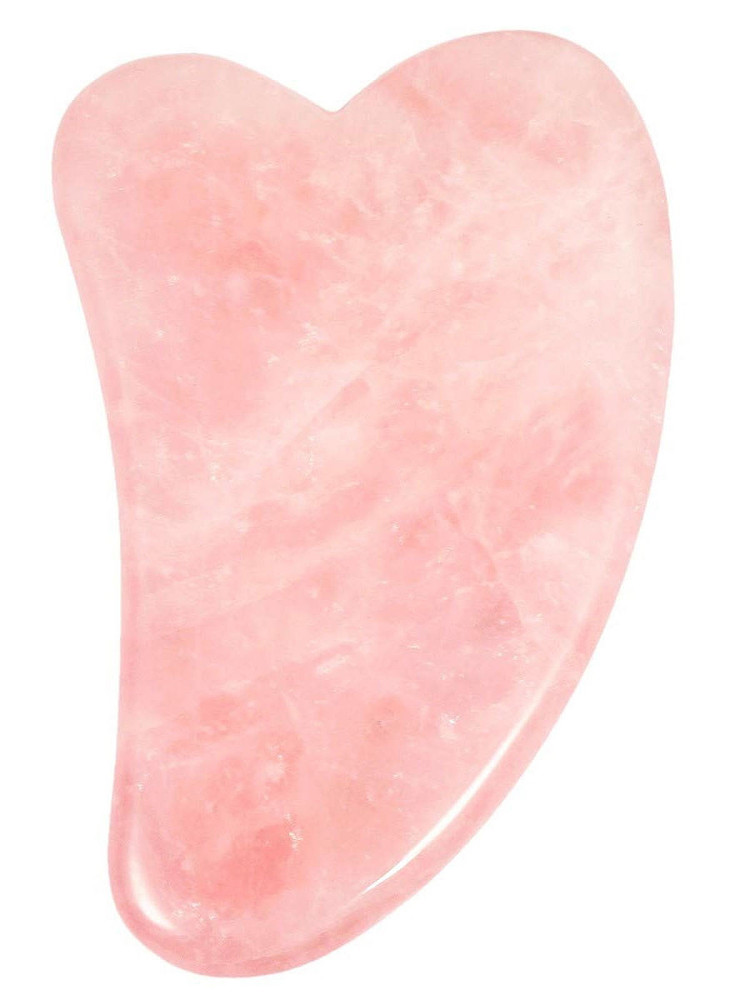 Самой большой (овальной частью гуаша) прорабатываем скулы, двигаясь снизу вверх. Можно менять положение пластин и чередовать гладкие стороны с ребристыми, чтобы подчеркнуть линию скул и лицевые контуры.