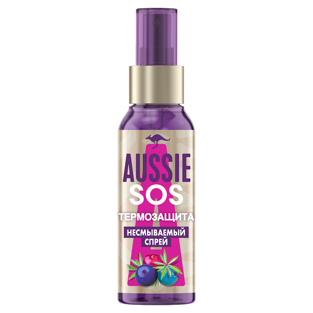 Термозащита – обязательное средство в уходе за поврежденными (и не только) волосами. Несмываемый SOS-спрей Aussie защищает волосы от высоких температур благодаря содержанию в составе экстракта тасманского перца. Лайм, богатый витамином С, работает как антиоксидант, а лимонный мирт укрепляет ослабленные волосы, возвращая им здоровое сияние.