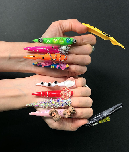 И конечно, самый сумасшедший нейл-арт, включая накладные ногти, расплавленные пламенем свечи.