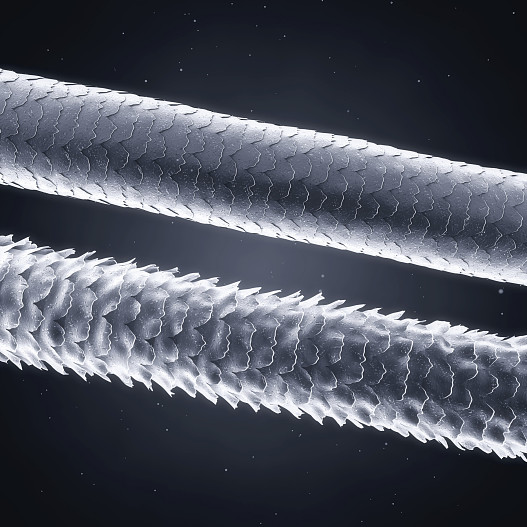 Кутикула (внешняя поверхность пористого волоса) имеет неоднородную структуру. На некоторых ее участках может находиться меньшее количество кератиновых чешуек, которые отвечают за увлажненность и защиту от повреждений, а на каких-то их и вовсе нет. Как правило, это волосы от природы вьющиеся, рыжие, светлые, осветленные, окрашенные и химически завитые.