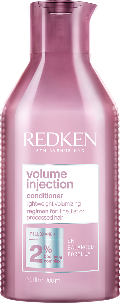 Если есть задача сделать волосы более объемными и плотными, чтобы они выглядели гуще, используйте шампуни и кондиционеры с молекулой филоксан. Например, в гамме Volume Injection (инъекция объема), Redken содержится такая молекула. Она проникает внутрь структуры волоса, и при контакте с водой из жидкости превращается в плотную субстанцию, которая увеличивает диаметр волоса, уплотняя его.