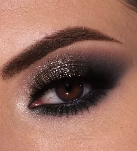 Хороший способ добавить изюминку в дымчатый макияж – это нанести на подвижное веко блестящие тени. После того, как закончите макияж, просто нанесите кончиком пальца тени на самый центр века. Такая техника нанесения макияжа подходит всем без исключения – даже людям с нависшим веком.