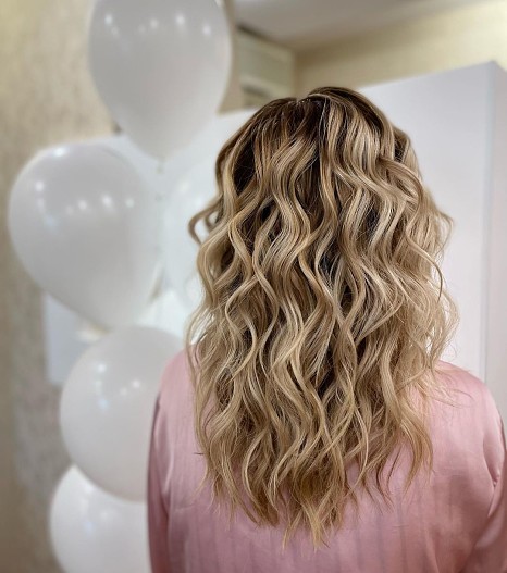 Завить локоны можно на крупные бигуди-липучки или на плойку с диаметром 32 миллиметра. В конце укладки волосы нужно сбрызнуть лаком — так кудри останутся с вами на весь день.