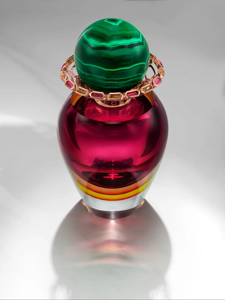Марка Bvlgari пошла дальше и создала уникальный единственный флакон с собственным именем L’Opera Grandiosa. Он выполнен вручную из муранского стекла от всемирно известного производителя Fornace Mian и украшен золотом и самоцветами. Венчает флакон малахитовый колпачок весом 2,485 карата, напоминающий фирменный кабошон Bvlgari. Финальный штрих − логотип марки на горлышке бутылки, обрамленный двумя алмазами бриллиантовой огранки. Ориентировочная стоимость изделия – 50 тыс евро.