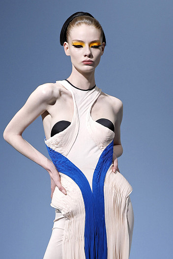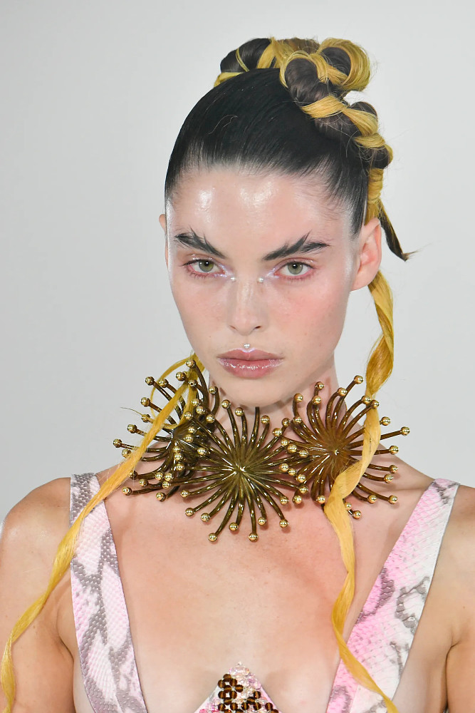 Лаконичные силуэты, прически в стиле 50-х и футуристичный макияж — идеальная коллекция Хайдера Акерманна для Jean Paul Gaultier — сорвала овации. Что касается макияжа, принцип прост: цвет теней должен контрастировать с нарядом, а губы — не выделяться. Чтобы покрытие было плотным, нанесите под тени базу. Полупрозрачные, акварельные цвета тоже в тренде. Наносите их на всё веко, как это сделала Кендалл Дженнер в съемке для журнала Pop.