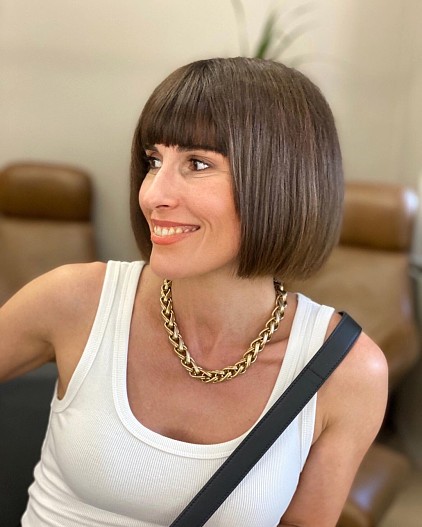 — Хотите подчеркнуть свои красивые глаза — сделайте густую прямую челку.