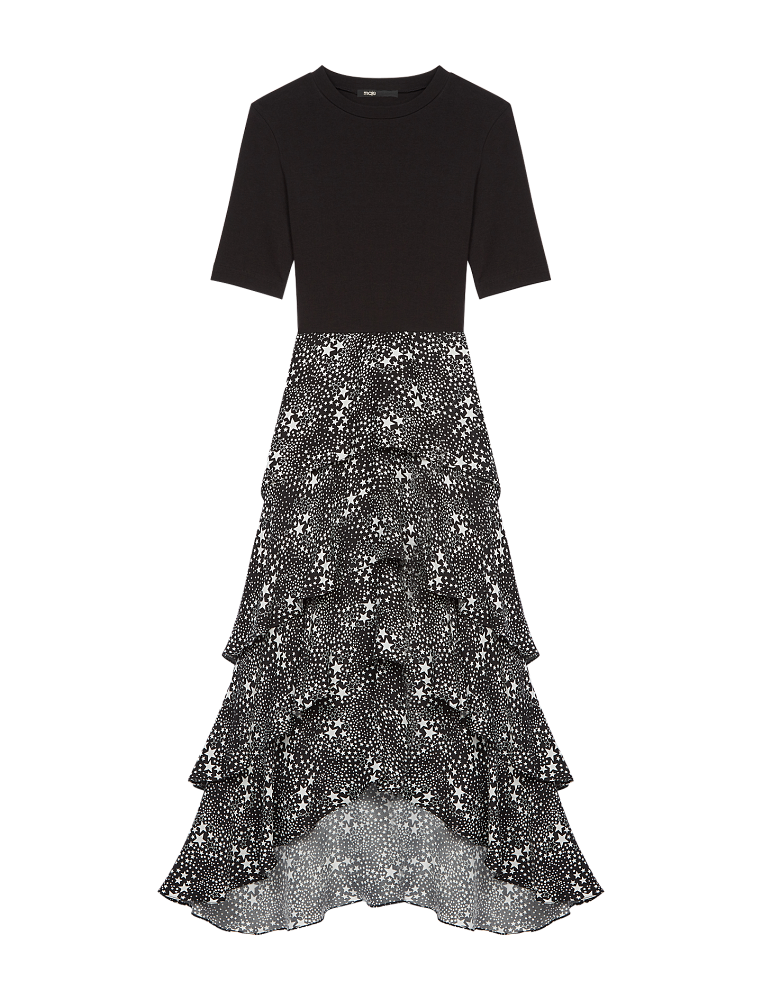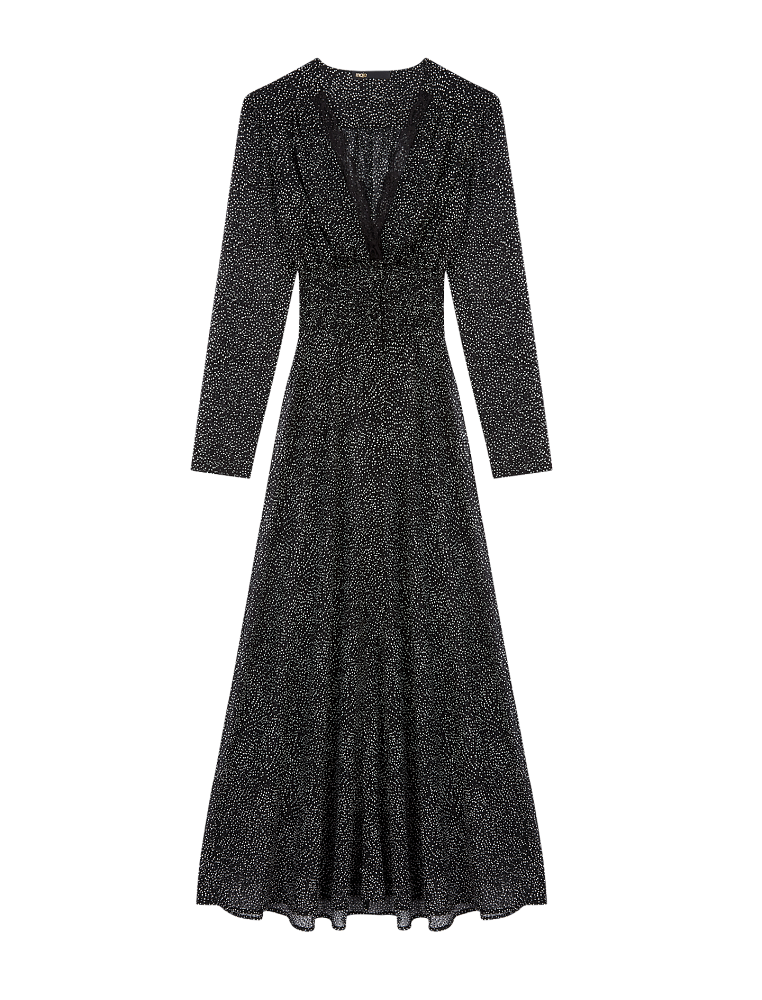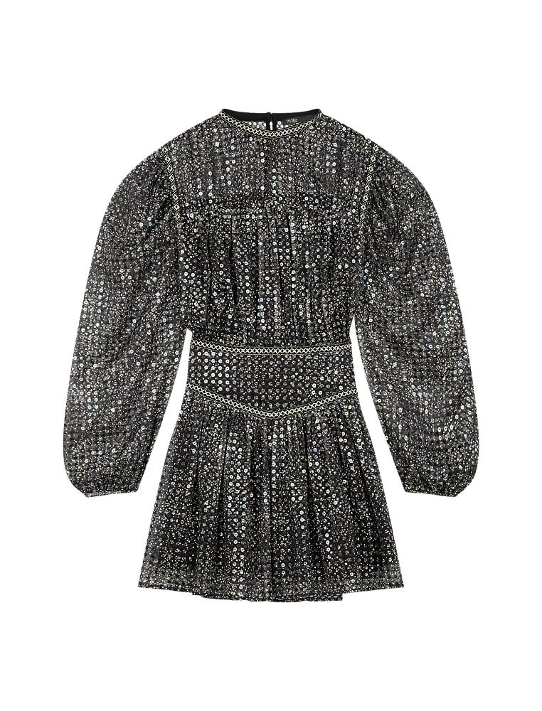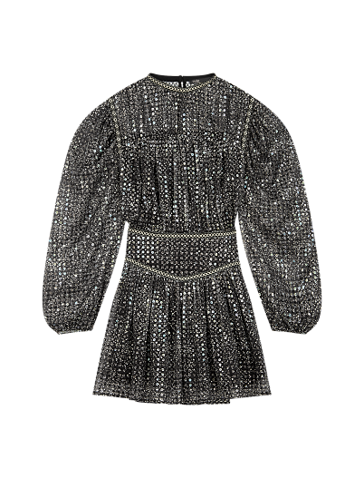 Вечерняя капсульная коллекция Maje создана для того, чтобы сиять. Ключевой цвет - черный, однако монохром щедро приправлен пайетками, блестками и стразами. В линейке представлены платья, обувь, жакеты, а также обувь и сумочки. А вы готовы танцевать всю ночь напролет?