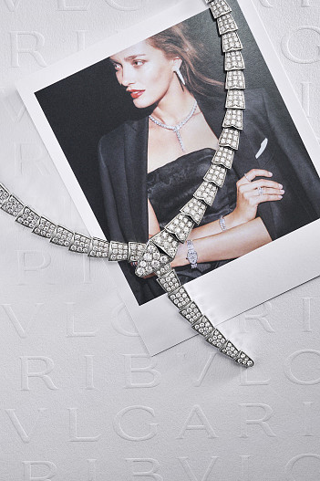 В коллекции Bulgari Serpenti появились три украшения, полностью усыпанных бриллиантами. Каждая грань спиралевидного колье, браслета и серег вручную покрыта бриллиантовым паве из камней разного калибра, создающим эффект движения.