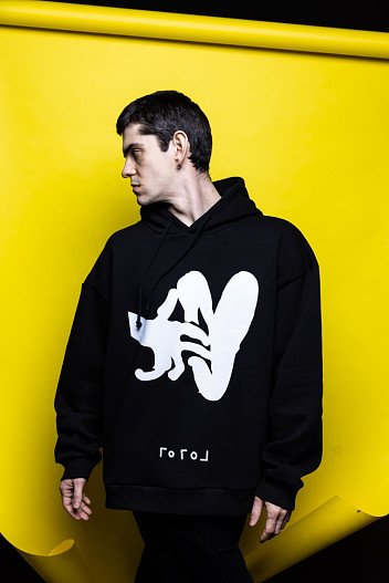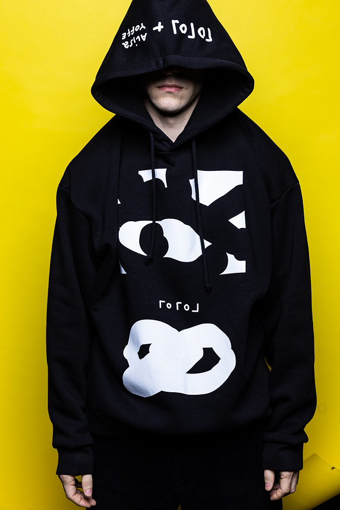 Специально для Гоголь-центра Алиса создала три варианта черных худи, три рисунка о любви и способах коммуникации.