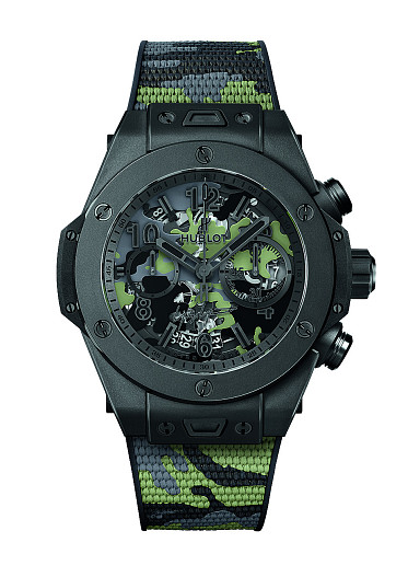 У Hublot вышли новые часы в камуфляжной расцветке — они созданы в партнерстве с легендарным японским дизайнером Yohji Yamamoto — Big Bang Camo Yohji Yamamoto. Это уже вторая по счету коллаборация двух брендов. Часы выпущены ограниченной серией в 200 экземпляров. Модель в корпусе из керамики диаметром 45 мм имеет сапфировый циферблат, украшенный накладными деталями, которые образуют биоморфный узор, — отсылка к камуфляжу с его характерным паттерном Йоджи. В положении «6 часов» — подпись дизайнера. Оригинальная конструкция камуфляжного мотива присутствует и на ремешке: каждая из составных форм вырезается по отдельности, собирается, а затем сливается воедино с помощью процесса вулканизации. Это совершенно новая технология для часового дела. Второй ремешок выполнен из черной ткани. Часы Big Bang Camo Yohji Yamamoto оснащены мануфактурным механизмом Unico с 72-часовым запасом хода.