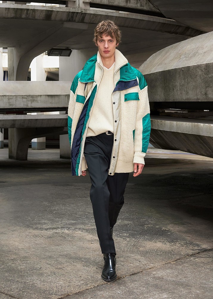 Вступлением к показу коллекции в этом сезоне стали кадры, снятые на окраинах Парижа, вдоль брутальных гипнотических спиралей здания в стиле open air. Одухотворенный саундтрек Gabber Eleganza, симбиотическая комбинация фолка и техно, эхом отражается в его бетонных стенах как ода давно прошедшим вечеринкам.