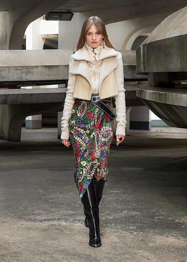 Отправляя нас в путешествие сквозь жанры и эпохи, новая коллекция позволяет воскресить в памяти историю человеческого мастерства и культурного наследия, которой пронизаны гипюровые топы, меховые болеро и массивные ремни. Такой контраст между натуральными материалами и изысканными деталями придает гардеробу многогранный характер, соединяя в нем одновременно день и ночь, мужское и женское.