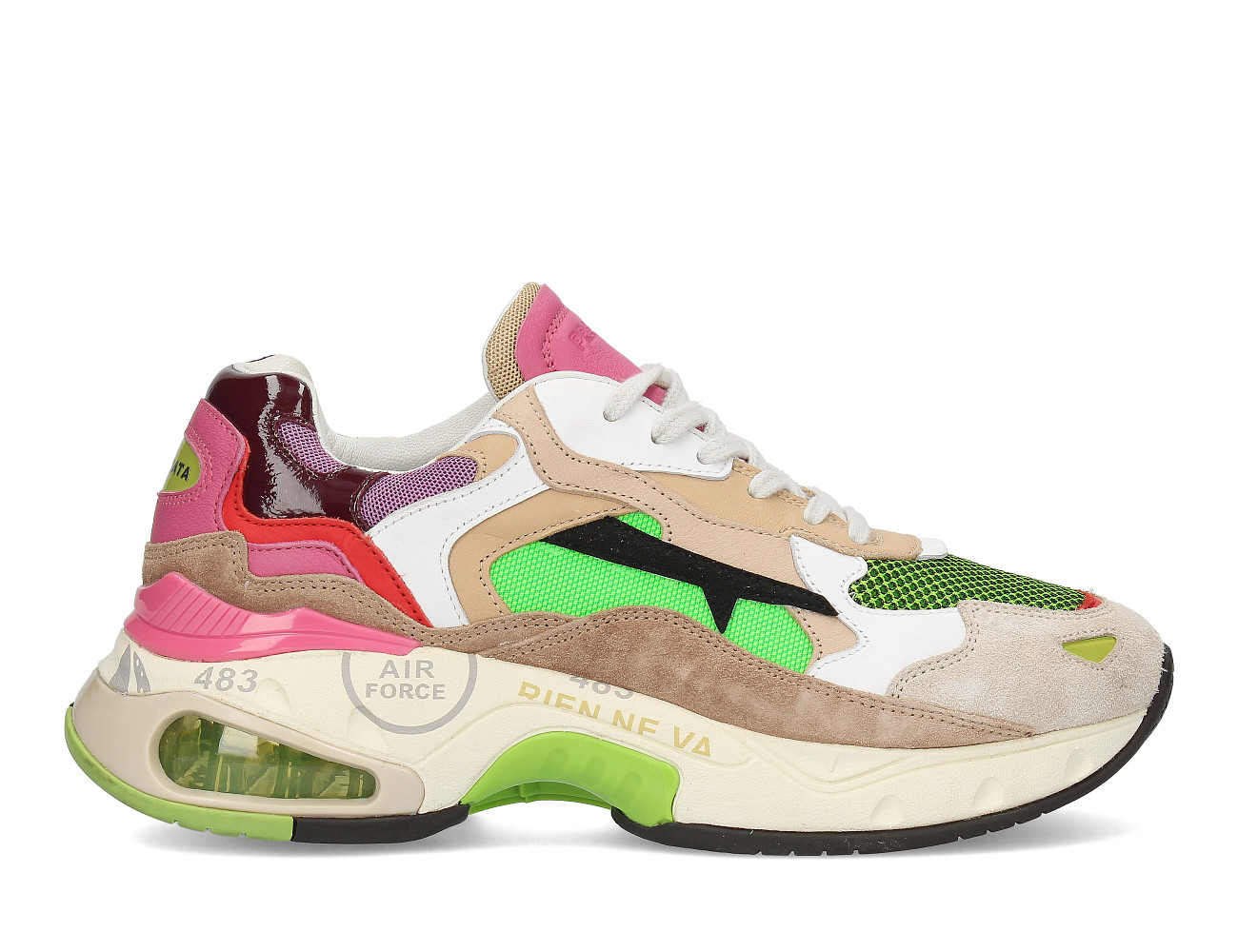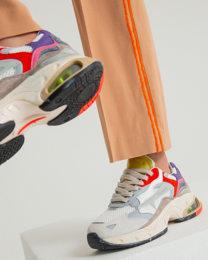 Кроссовки Zac-Zac, Conny и кеды Steven и Belle давно стали фаворитами покупателей и одинаково хорошо сочетаются как с летящими платьями, так и с повседневными джинсами. В SS21 можно найти сникеры на любой вкус — от сдержанных и элегантных до ярких и смелых, с использованием блесток, анималистичных принтов и металлизированной кожи. Роль декора по традиции выполняют аппликации в виде узнаваемых иероглифов Premiata и принтованная печатями и штампами подошва. Сезонные вариации знаковых моделей выполнены из премиальных материалов, а структурированный задник и амортизирующая подошва из пены EVA обеспечивают исключительный комфорт.