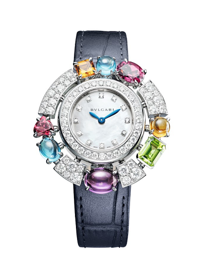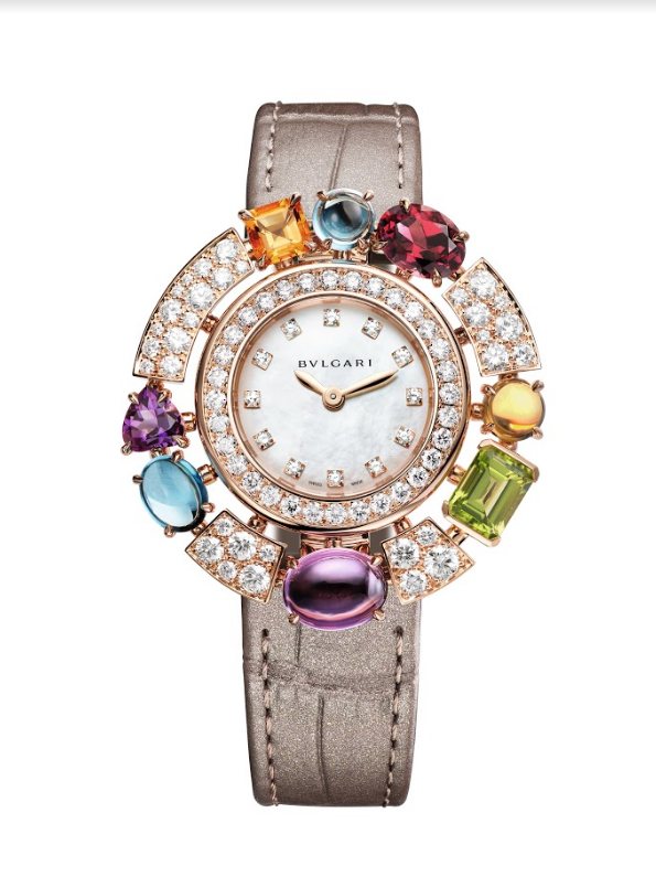 Bvlgari представляет также четыре новые модели коктейльных часов Divissima и Allegra, задуманных как воплощение жизнерадостности и энергии la Dolce Vita. В новинках искусно сочетаются блестящие драгоценные камни – это ещё одно подтверждение статуса итальянского ювелирного Дома как Мастера цветных драгоценных камней.