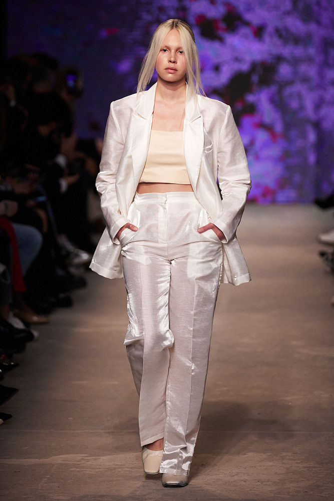 Дизайнер сочетает строгие архитектурные линии с плавностью абстрактных форм, сдержанным кроем, аккуратными, но выразительными деталями. В коллекции превалирует монохром: все образы выполнены в бежевых, молочных и белых оттенках.