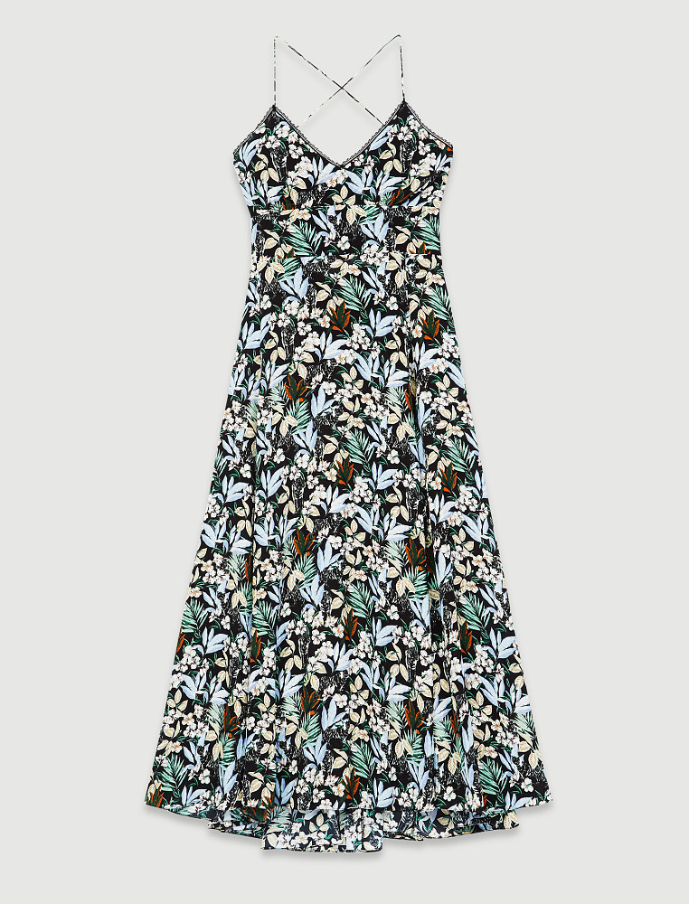 Воздушные платья, легкие блузы, стильные платки теперь украшены рисунками в виде экзотических цветов и диких растений. Maje смело сочетает французскую утонченность с необузданностью флоры джунглей. Свободные силуэты и природные цвета выгодно подчеркнут бронзовый загар кожи, делая каждый образ невесомым и невероятно женственным.