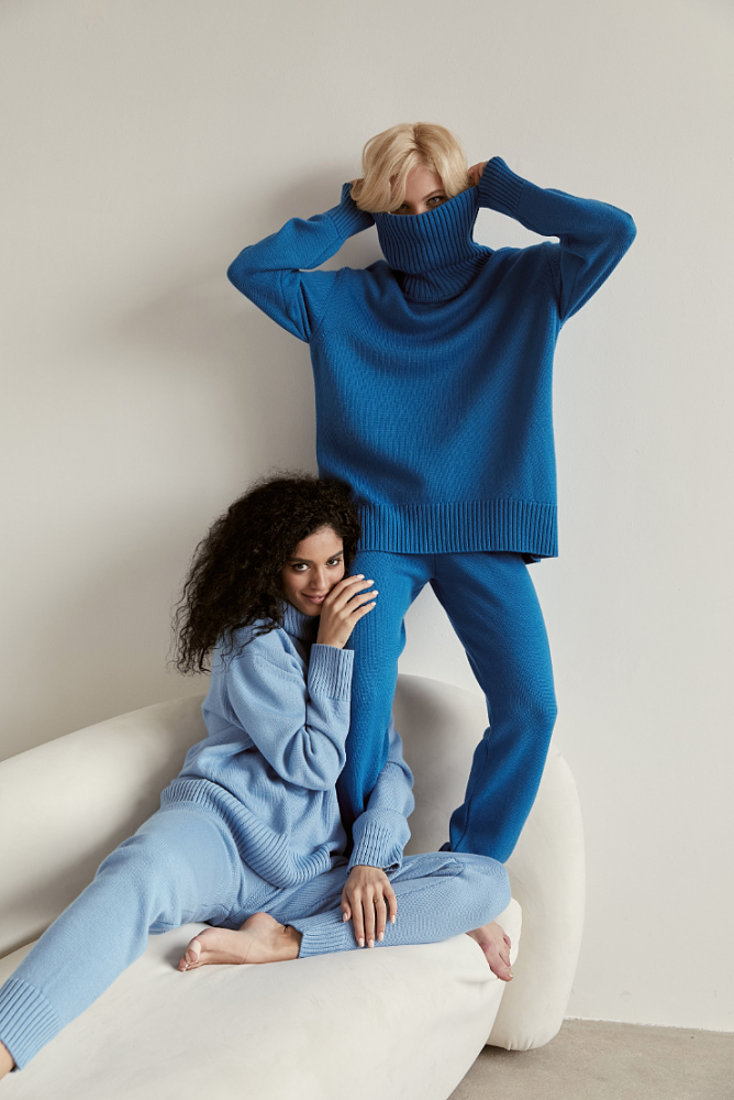 В ассортименте были замечены базовые природные оттенки на ряду с интеллектуальными: травяным, шоколадным, латте, небесно-голубым, глубоким цветом сапфира и розовой пудры.