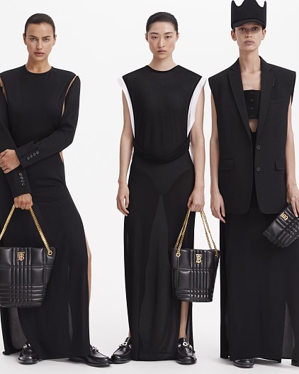 Модель сумки Olympia обновляется. В новом сезоне сумка имеет более мягкую форму с круглым ремешком. В коллекции Весна/Лето 2022 Burberry представляет новую модель сумки Rhombi в форме эллипса, вдохновленную абстрактными принтами коллекции. Структурированная форма повторяет силуэт тела и имеет слегка мягкий ремешок с крупной застежкой.